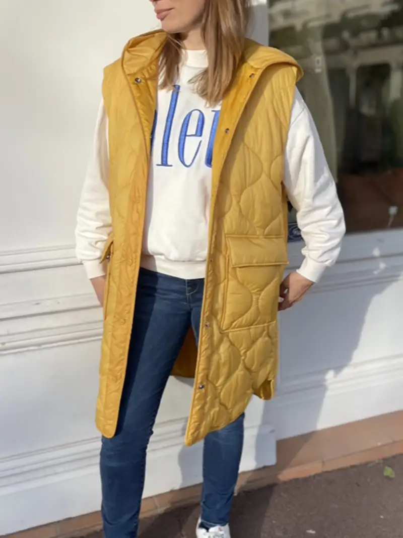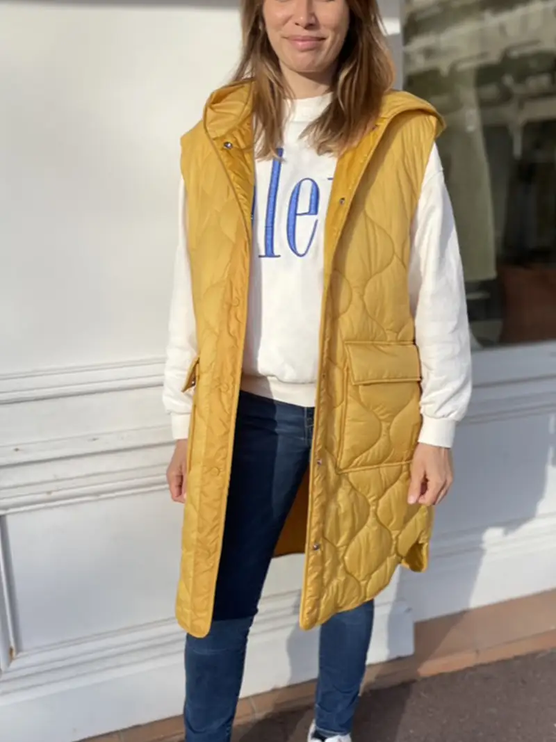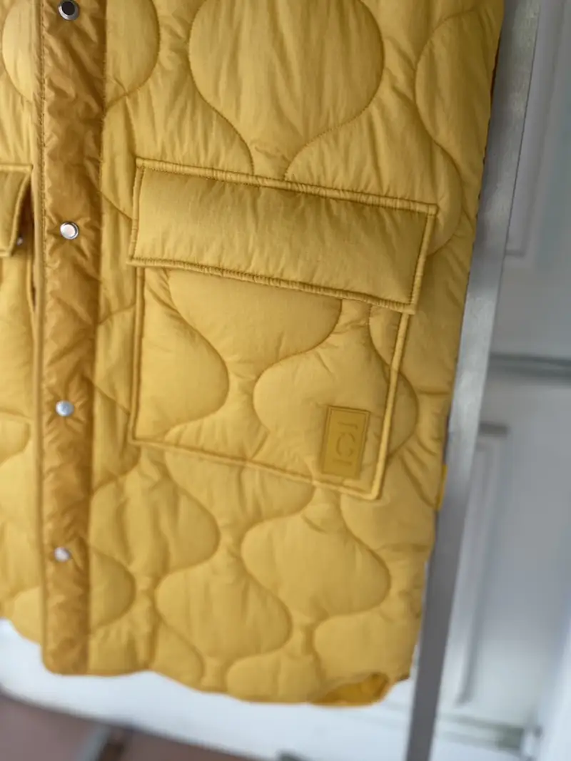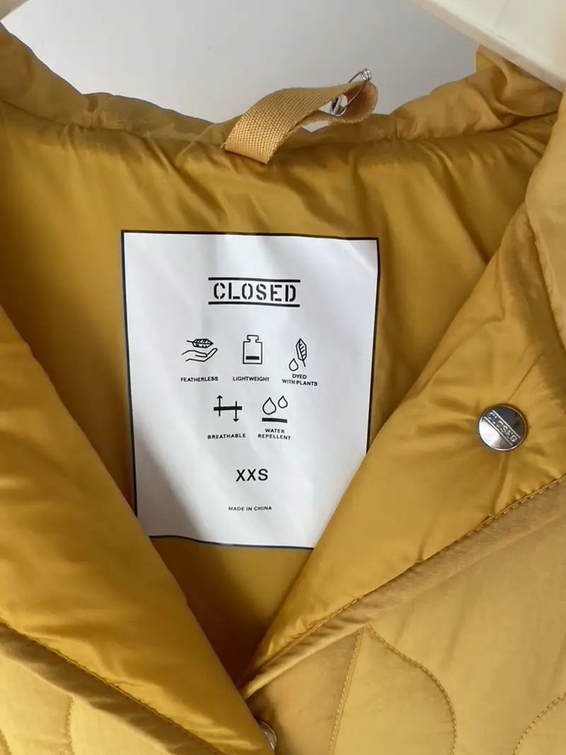 Audacieuse et lumineuse, la doudoune sans manches Dalia signée CLOSED séduit par son jaune éclatant et son motif damassé subtil.