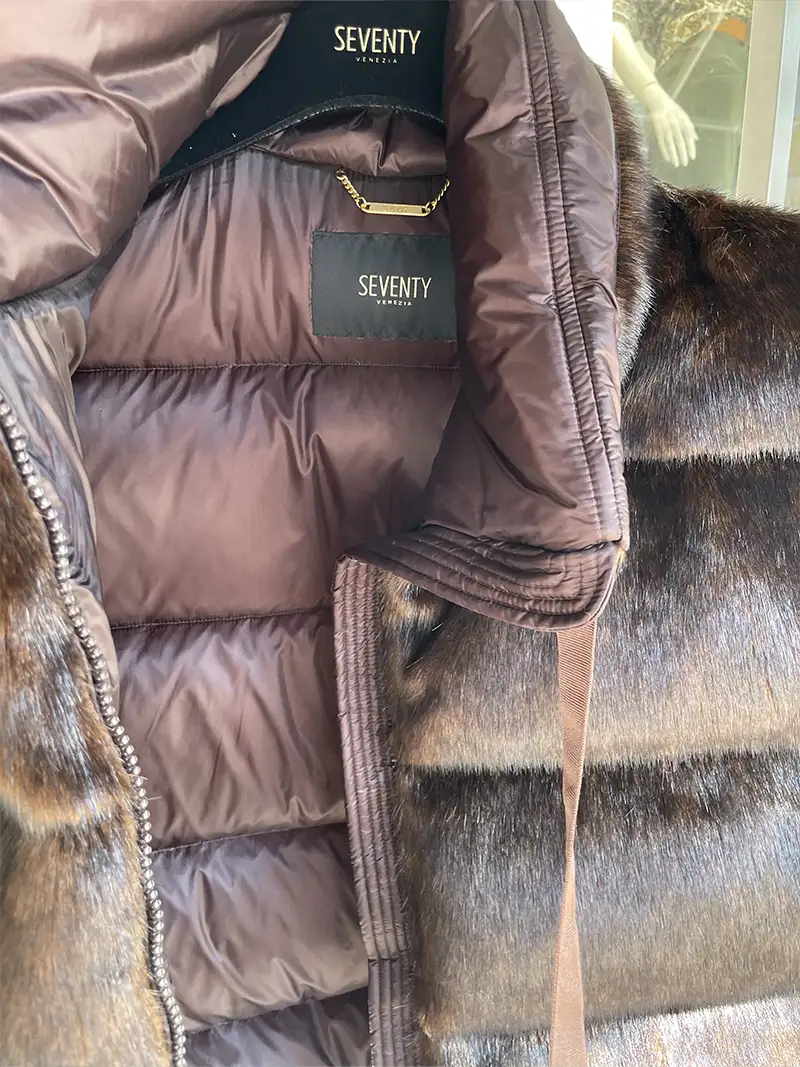 Moderne et enveloppante, la doudoune sans manches Martha signée SEVENTY allie confort et style. Sa finition en fourrure synthétique sur le devant et son col resserrable à lien lui donnent une allure chaleureuse et sophistiquée.
