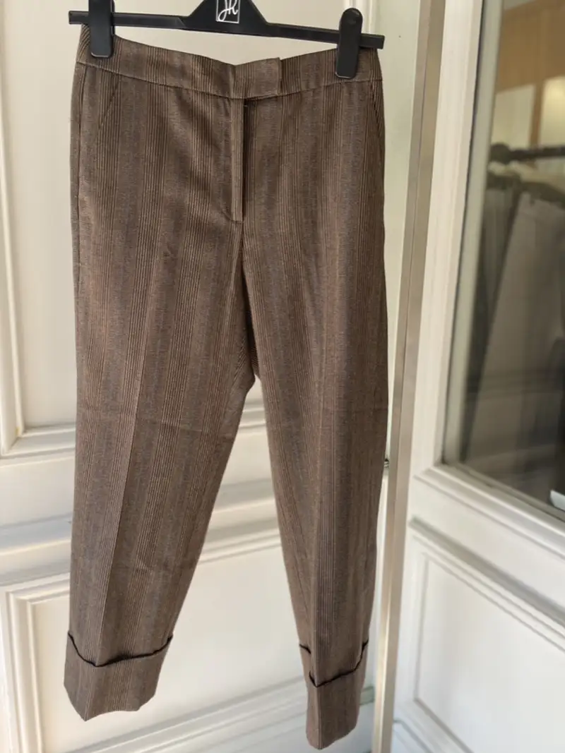 Sa coupe 7/8 met la silhouette en valeur tout en apportant modernité et légèreté. Le grand revers en bas de jambe structure la ligne et souligne l’allure contemporaine du modèle.