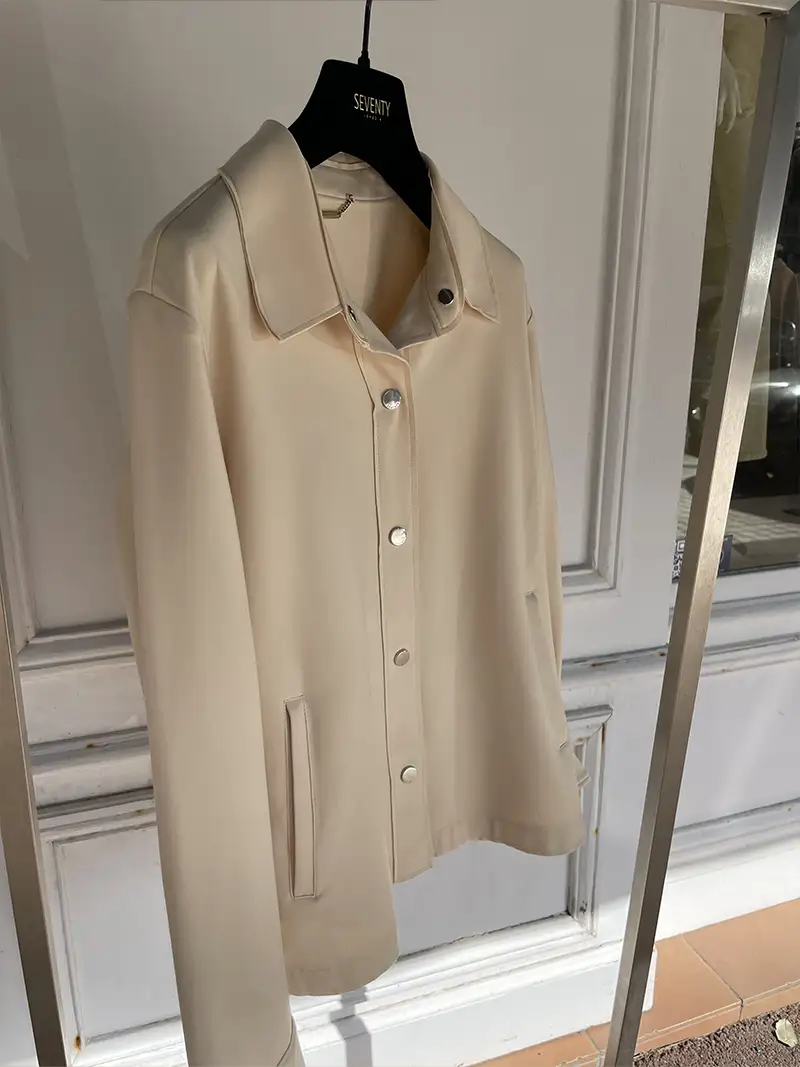 Sa couleur coquille d’œuf, douce et lumineuse, apporte une touche raffinée et s’accorde facilement à un vestiaire neutre ou plus contrasté. Les poches à bouton pression ajoutent une note moderne et fonctionnelle.